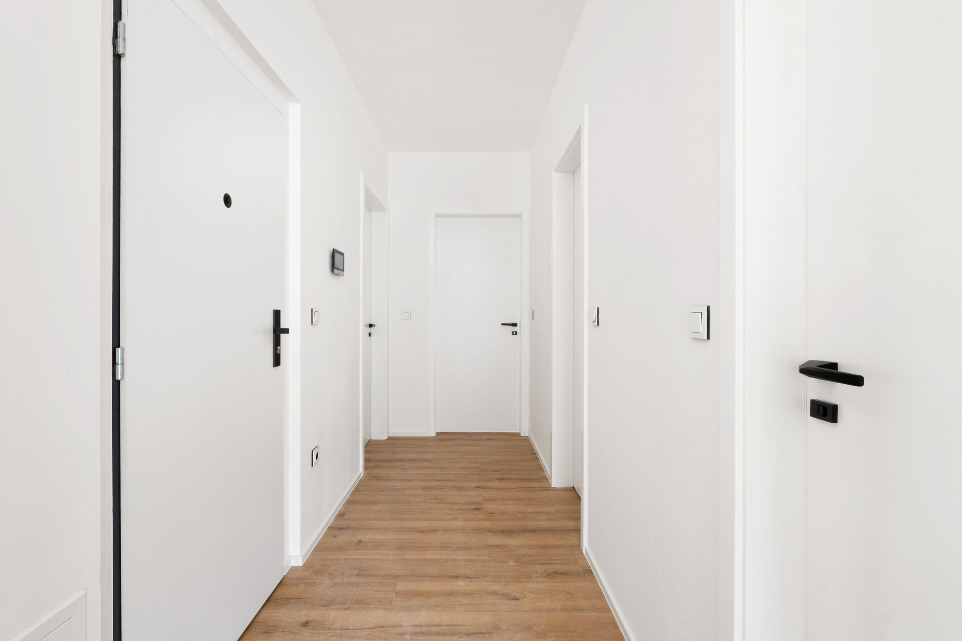 - elegantní interiérové dveře v bílém lesku s designovými klikami