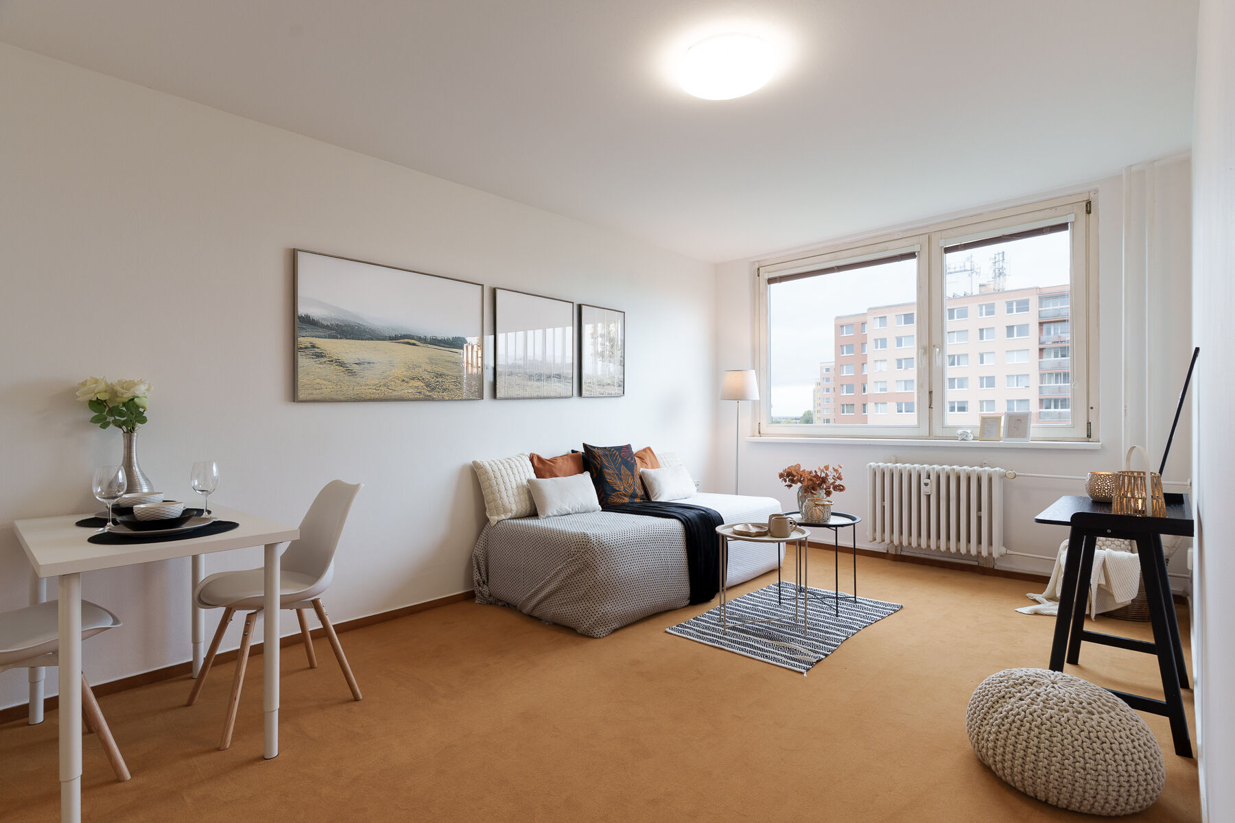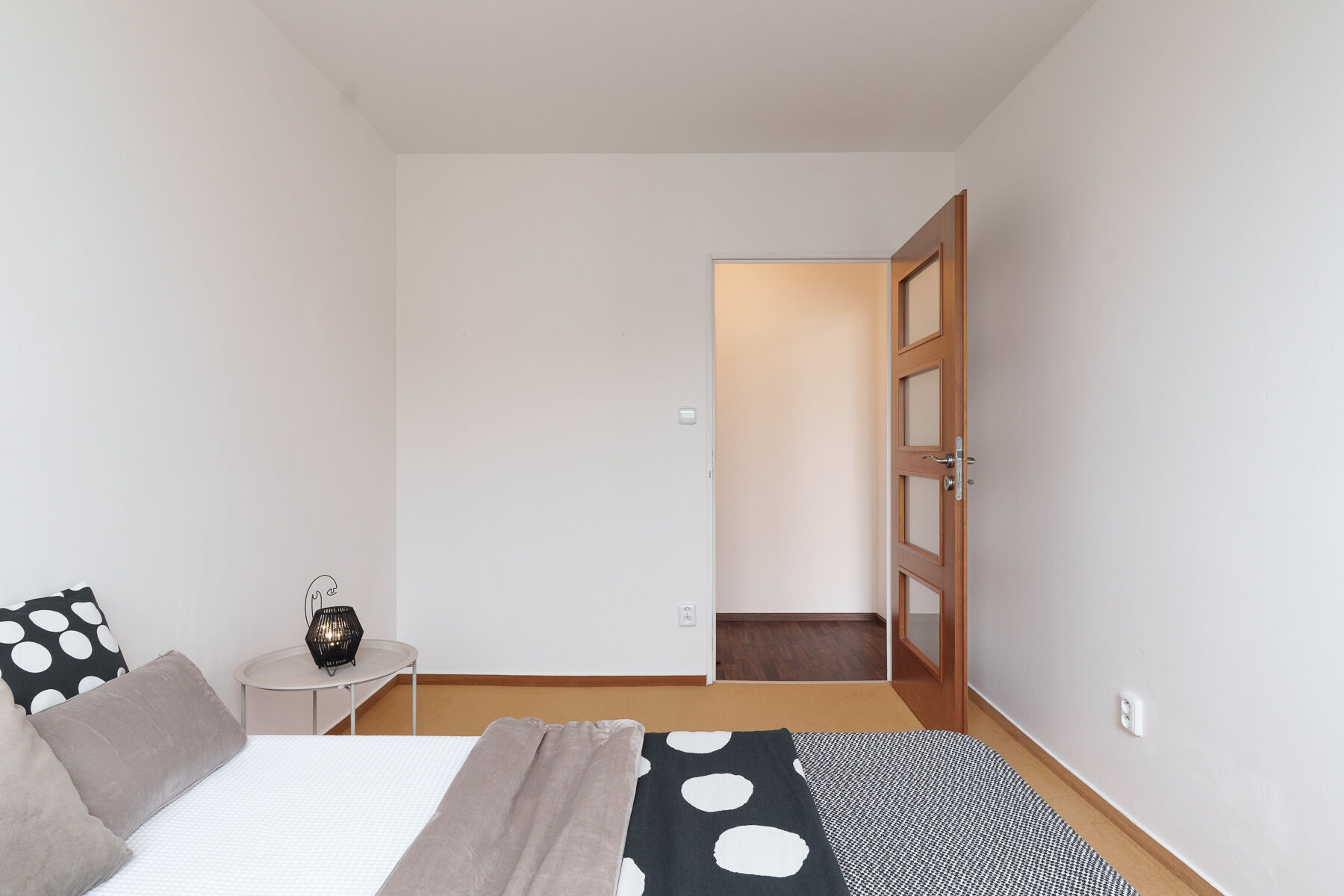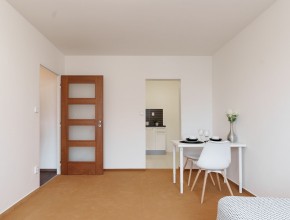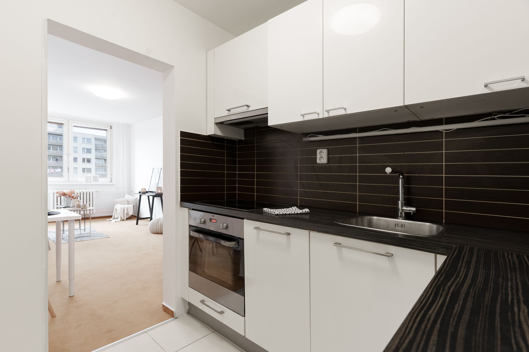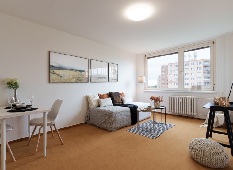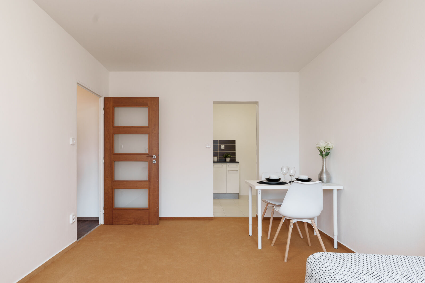 Dispozici tvoří obývací pokoj s kuchyňským koutem, ložnice, koupelna s vanou a toaletou a chodba s úložnými prostory. Kuchyňská linka je vybavena myčkou, elektrickým sporákem a troubou. Díky své praktické dispozici, nízkým provozním nákladům a dobré dostupnosti je byt vhodný jak pro vlastní bydlení, tak i jako investice k pronájmu.