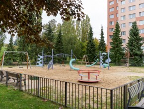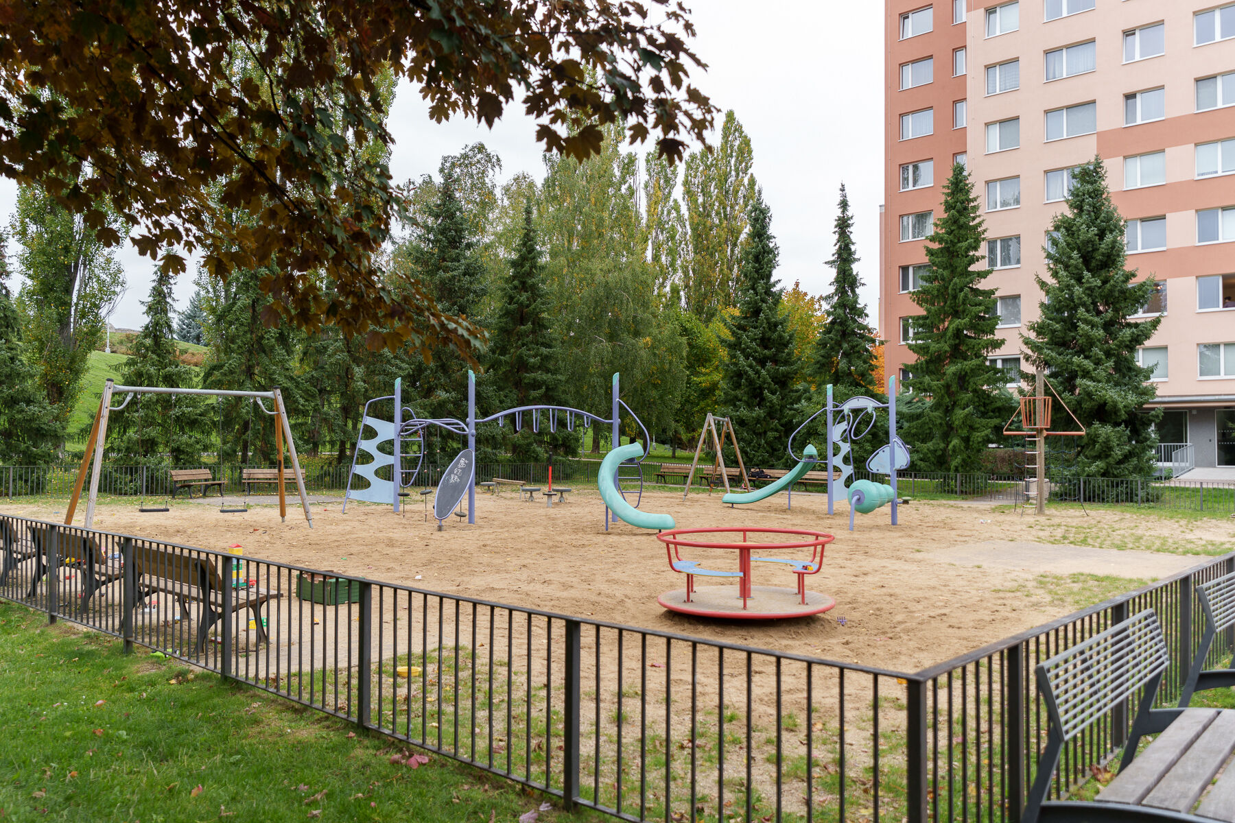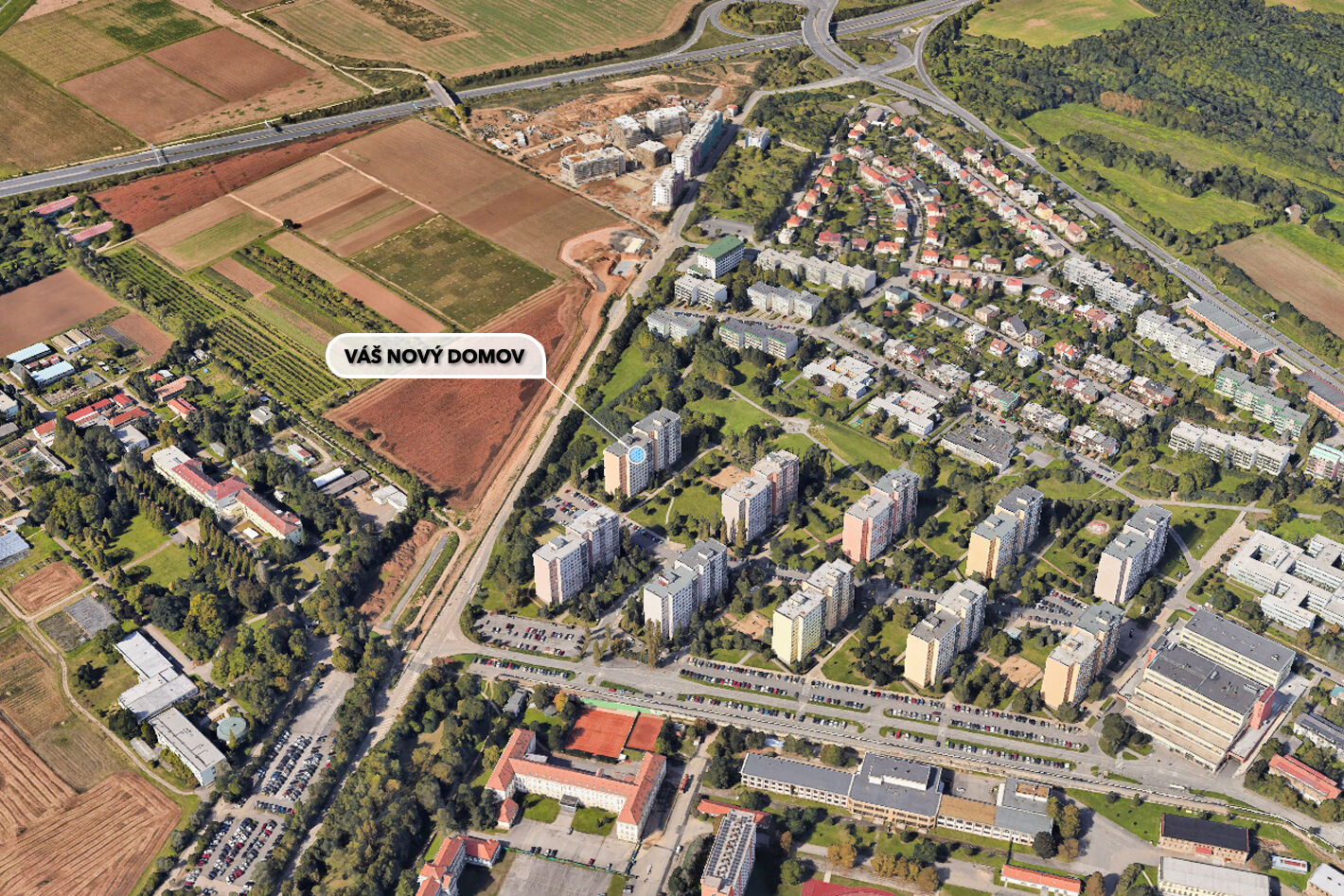 V okolí je kompletní občanská vybavenost – obchody, školy, školky, sportoviště i dostatek zeleně pro volnočasové aktivity.