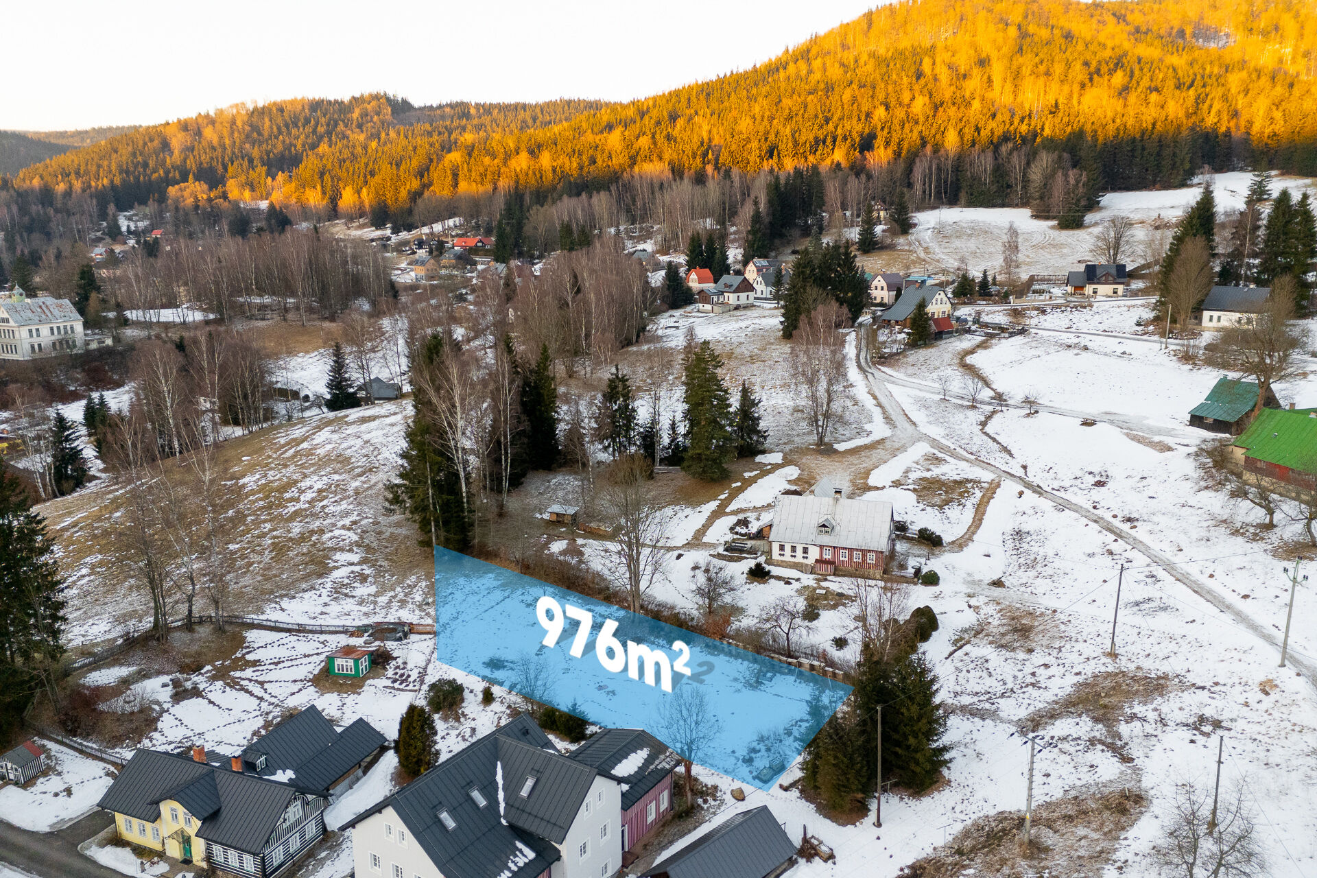 Rovinatý stavební pozemek o výměře 976 m² v klidné části Antonínova, spadající pod Josefův Důl v srdci Jizerských hor.