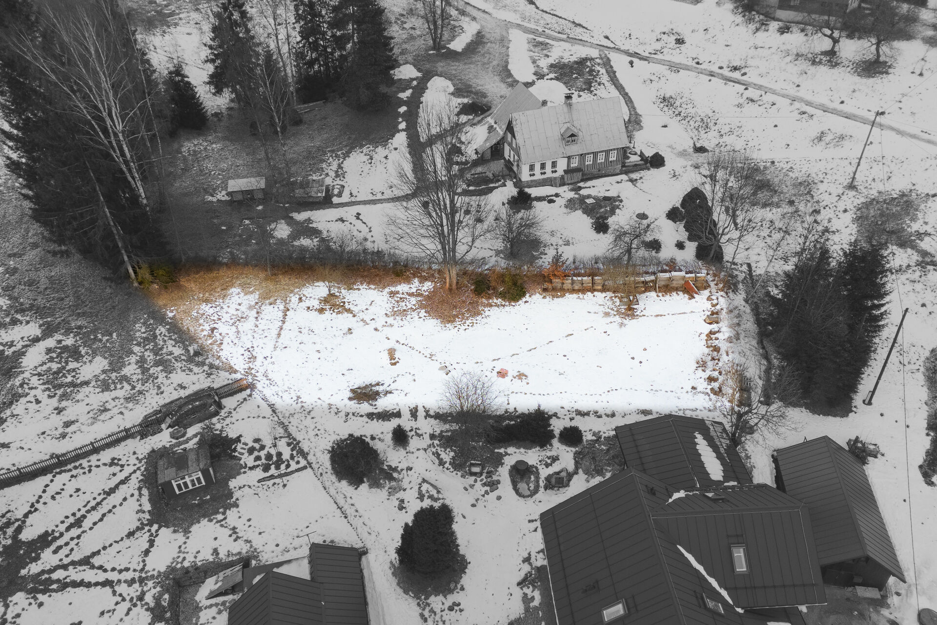 Tato parcela s vlastním přístupem nabízí ideální podmínky pro výstavbu rodinné roubenky nebo rekreačního domu. Velkou přidanou hodnotou je, že součástí ceny je kompletní projektová dokumentace tradiční podkrovní roubenky o podlahové ploše 220 m² včetně řešení inženýrských sítí, přičemž žádost o stavební povolení již byla podána. Budoucí majitel tak může výrazně urychlit celý proces realizace.