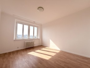 V bytě najdete prostornou vstupní halu do "L", odkud se vstupuje do dalších místností. Byt disponuje prostorným obývacím pokojem s otevřenou kuchyní (kombinovaný plynový vařič s troubou, myčka, potravinová skříň, a dřevěná kuchyňská linka - lednici si nájemce zřizuje sám), následují 2 ložnice s orientací do klidné ulice. Následuje koupelna s vanou, umyvadlem a topným žebříkem, a oddělené WC s umyvadlem, dále pak komora s přípojkou na pračku/sušičku.