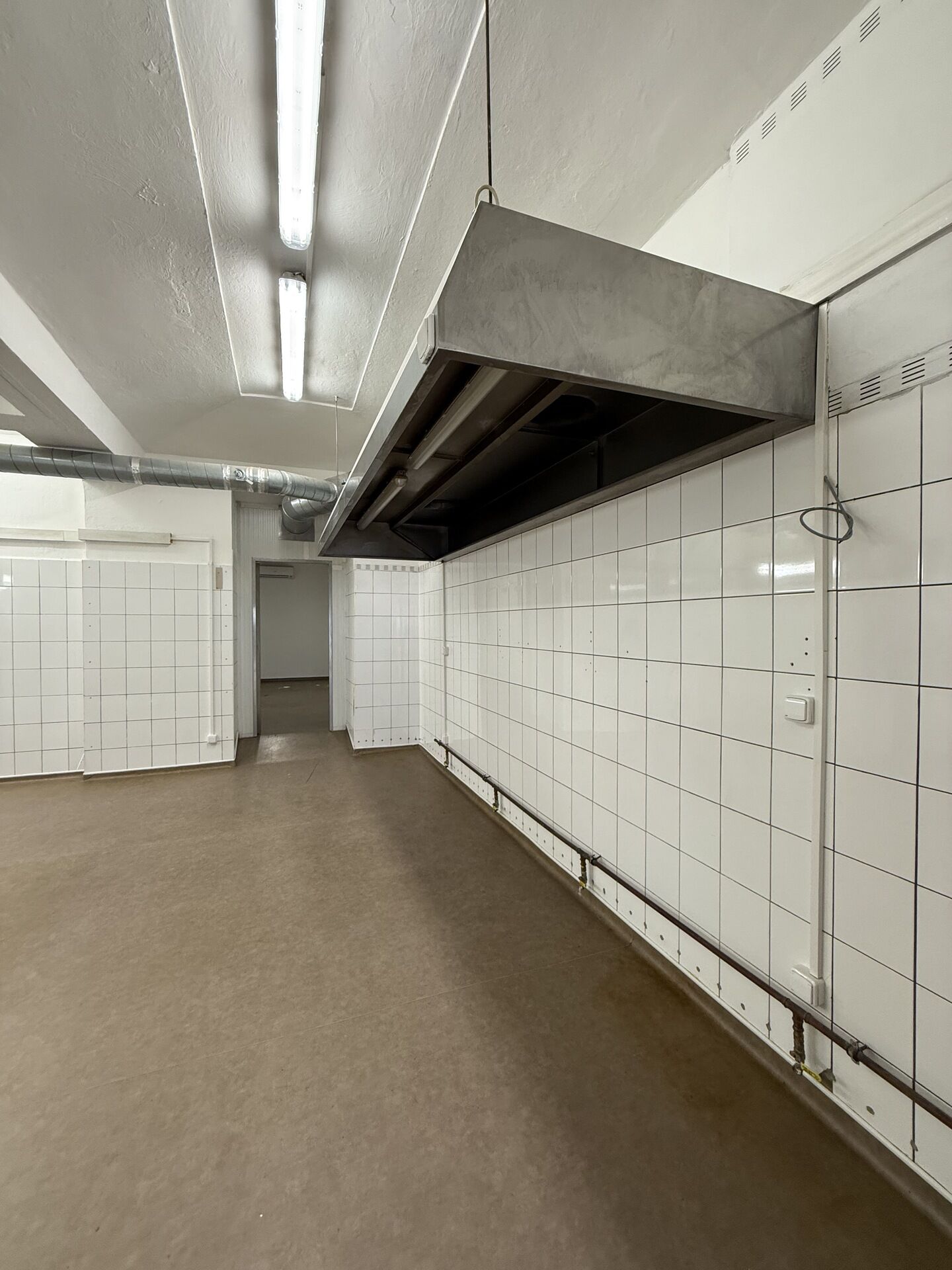 Prostory jsou určeny i pro gastro provoz díky vzduchotechnice (kavárna, bistro, prodejna/výroba…). Kolaudace nyní: prodejna ryb.