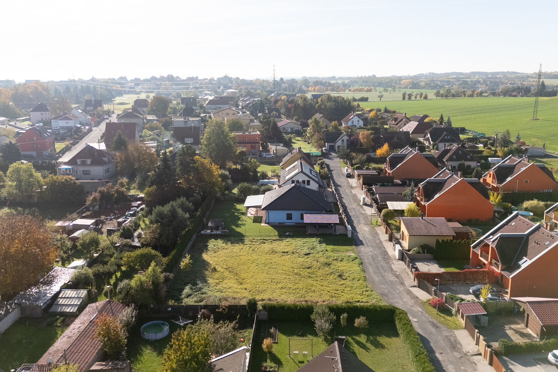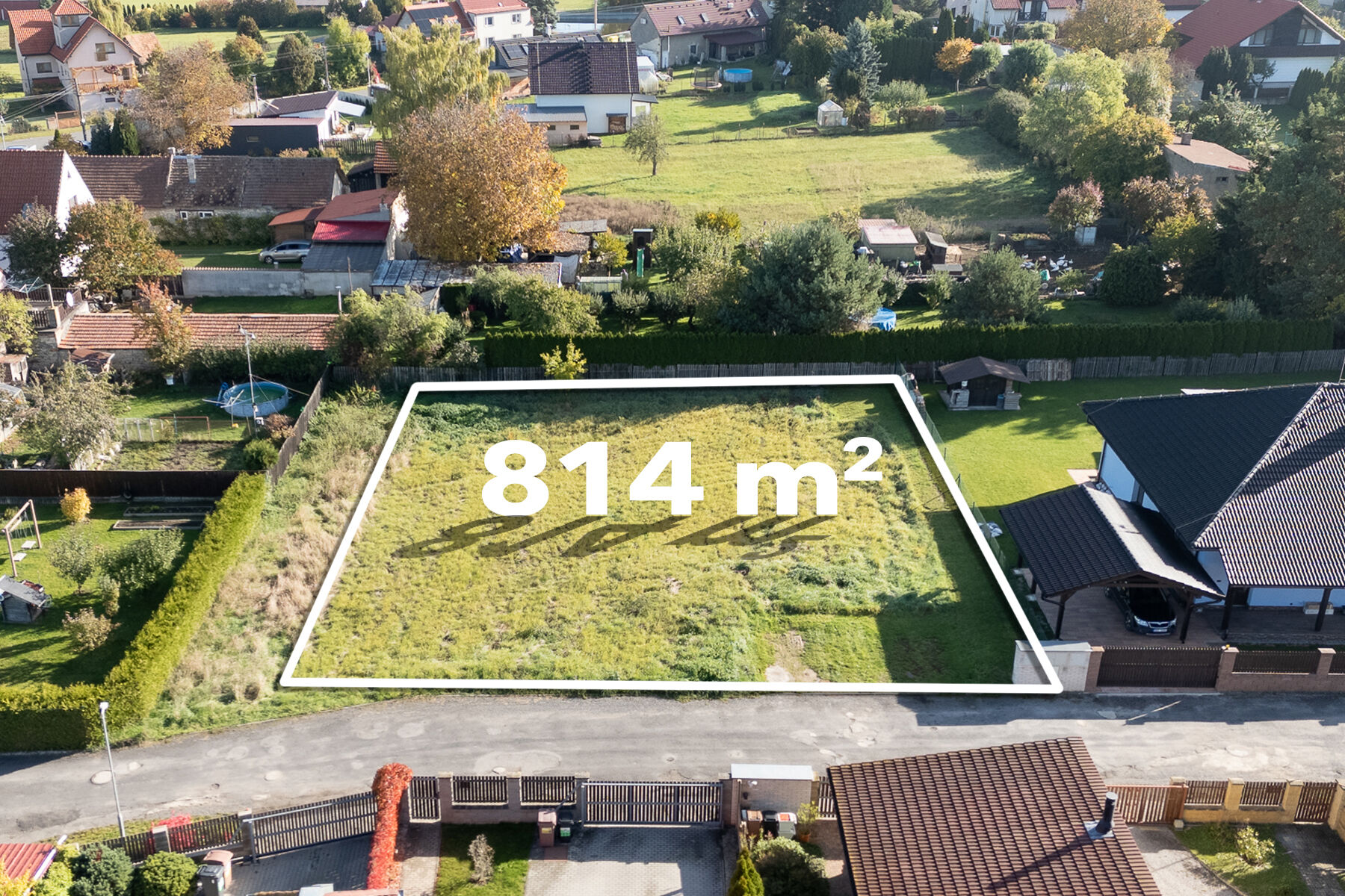 Pozemek je rovný, pravidelného tvaru a nachází se v zástavbě rodinných domů. Výhodou je, že sousedí pouze se dvěma dalšími domy, což zaručuje soukromí a klid.