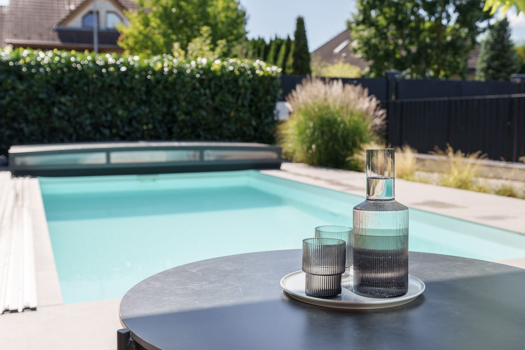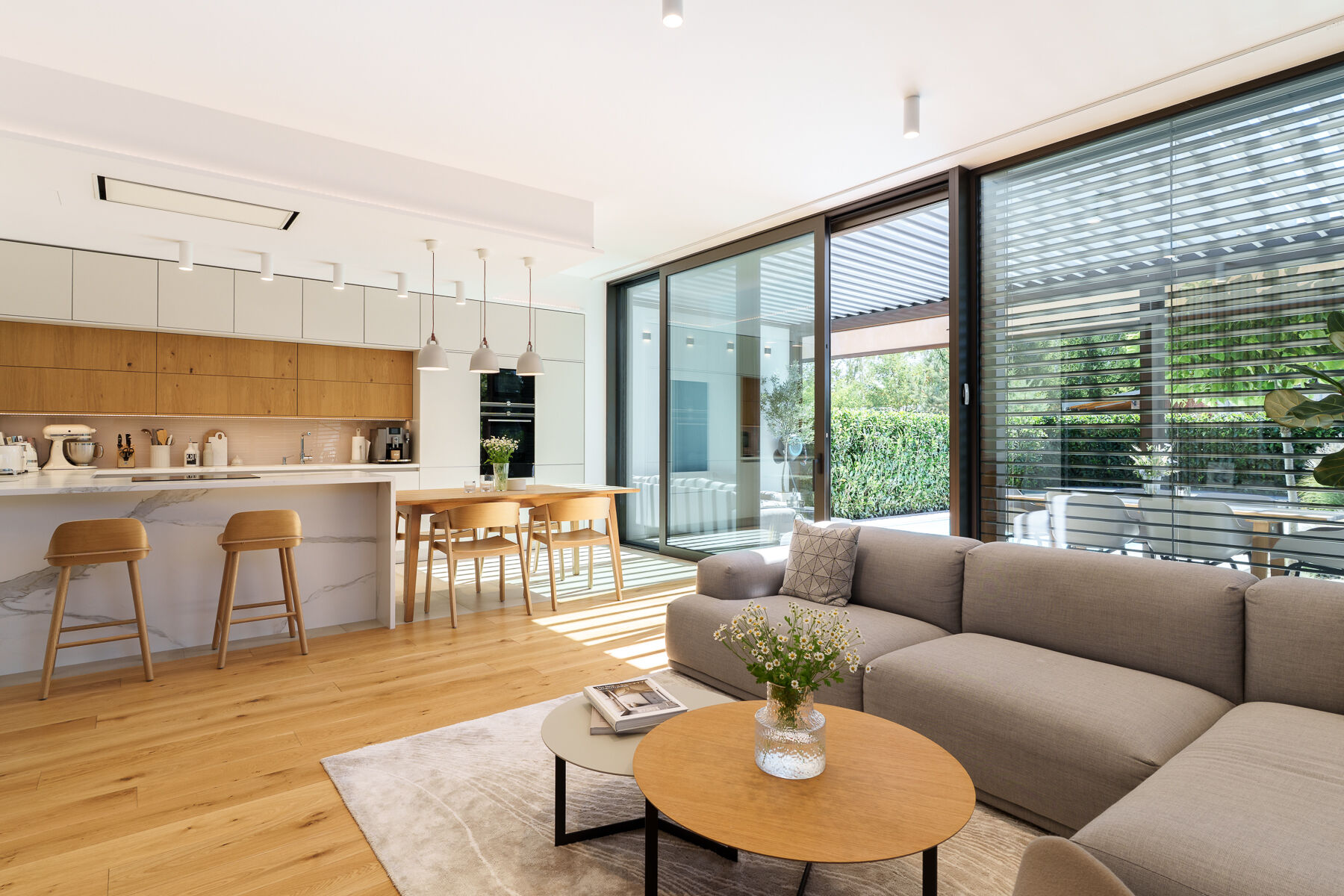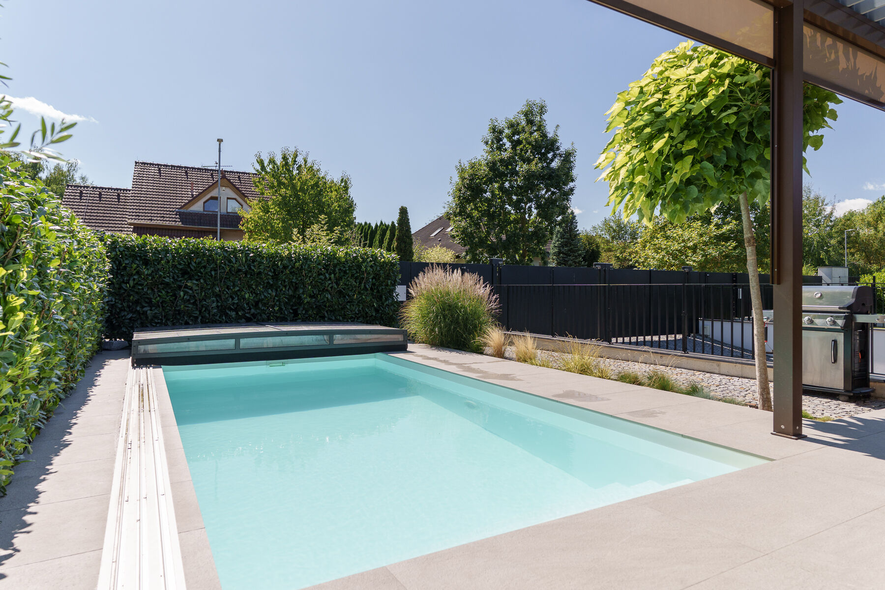V exkluzivním zastoupení nabízíme nadstandardně vybavenou novostavbu o dispozici 4+kk, s užitnou plochou 186 m², zahradou 356 m² a slunnou terasou s bioklimatickou pergolou se screenovými zástěnami a vyhřívaným bazénem se slanou vodou.