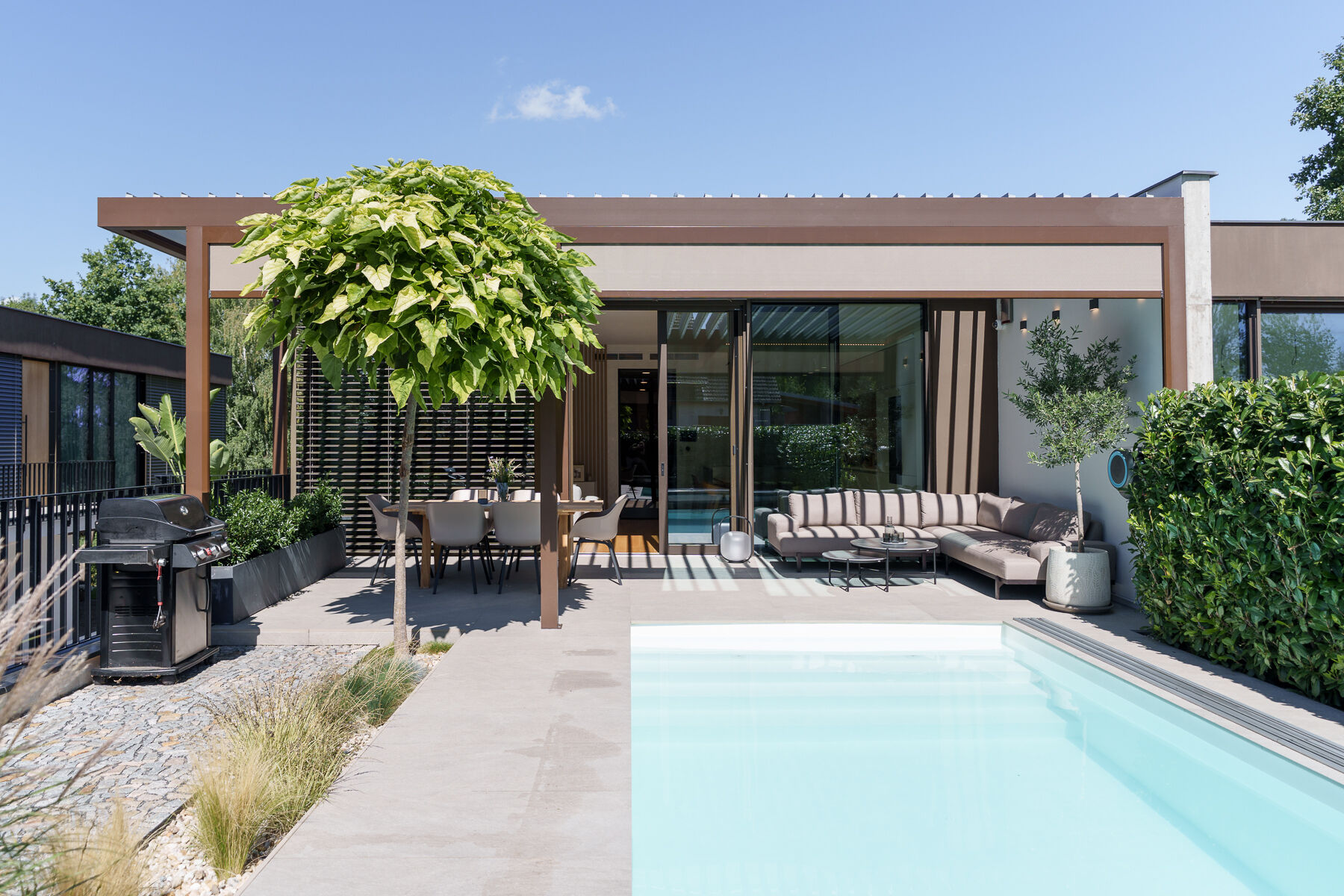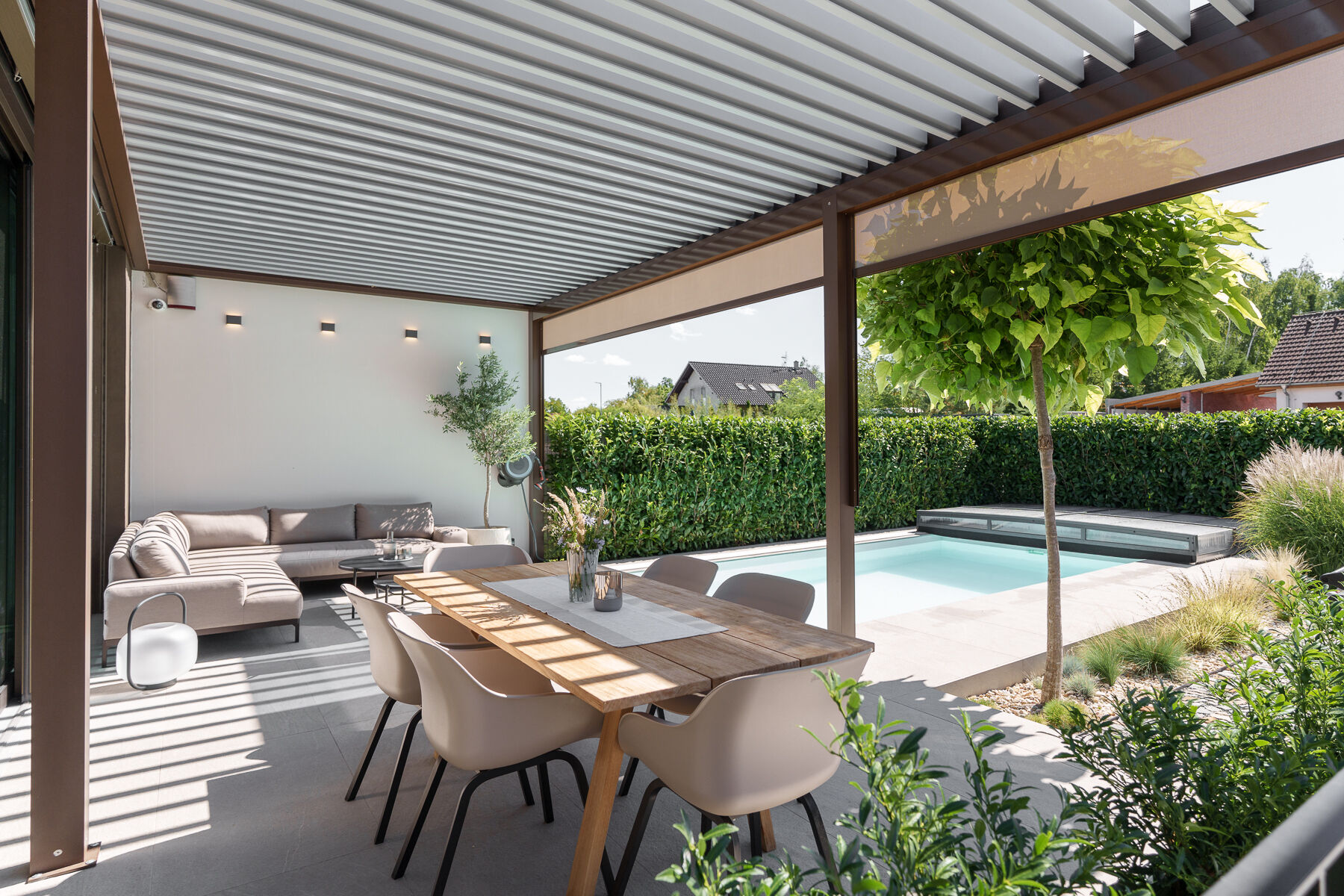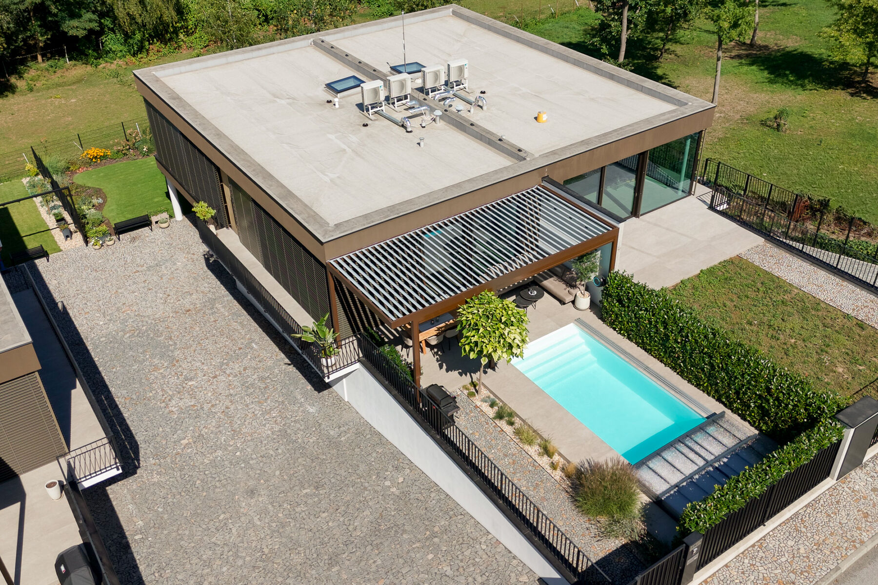 - bioklimatická pergola se screenovými zástěnami