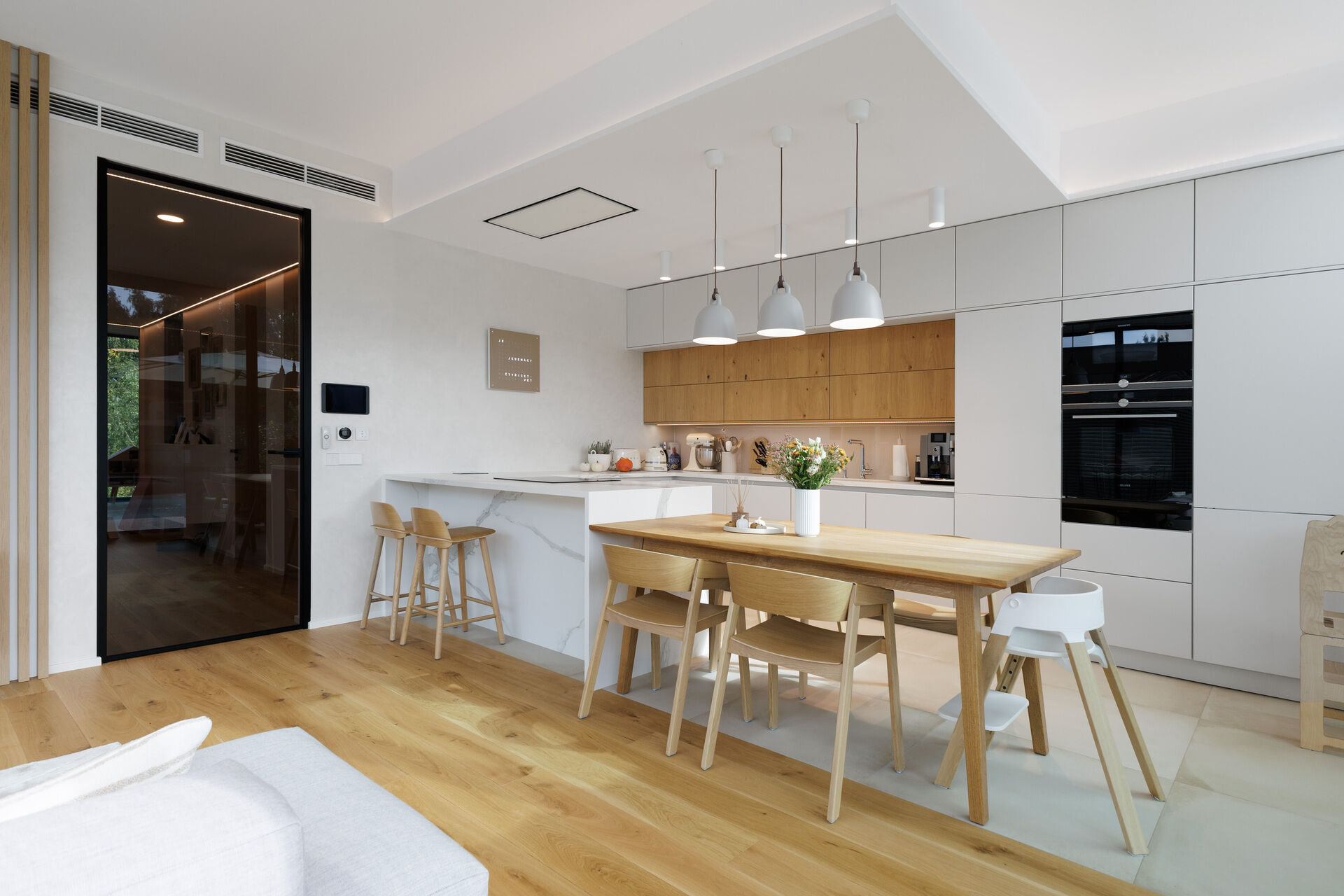 - integrované podlahové vytápění (včetně garáže)