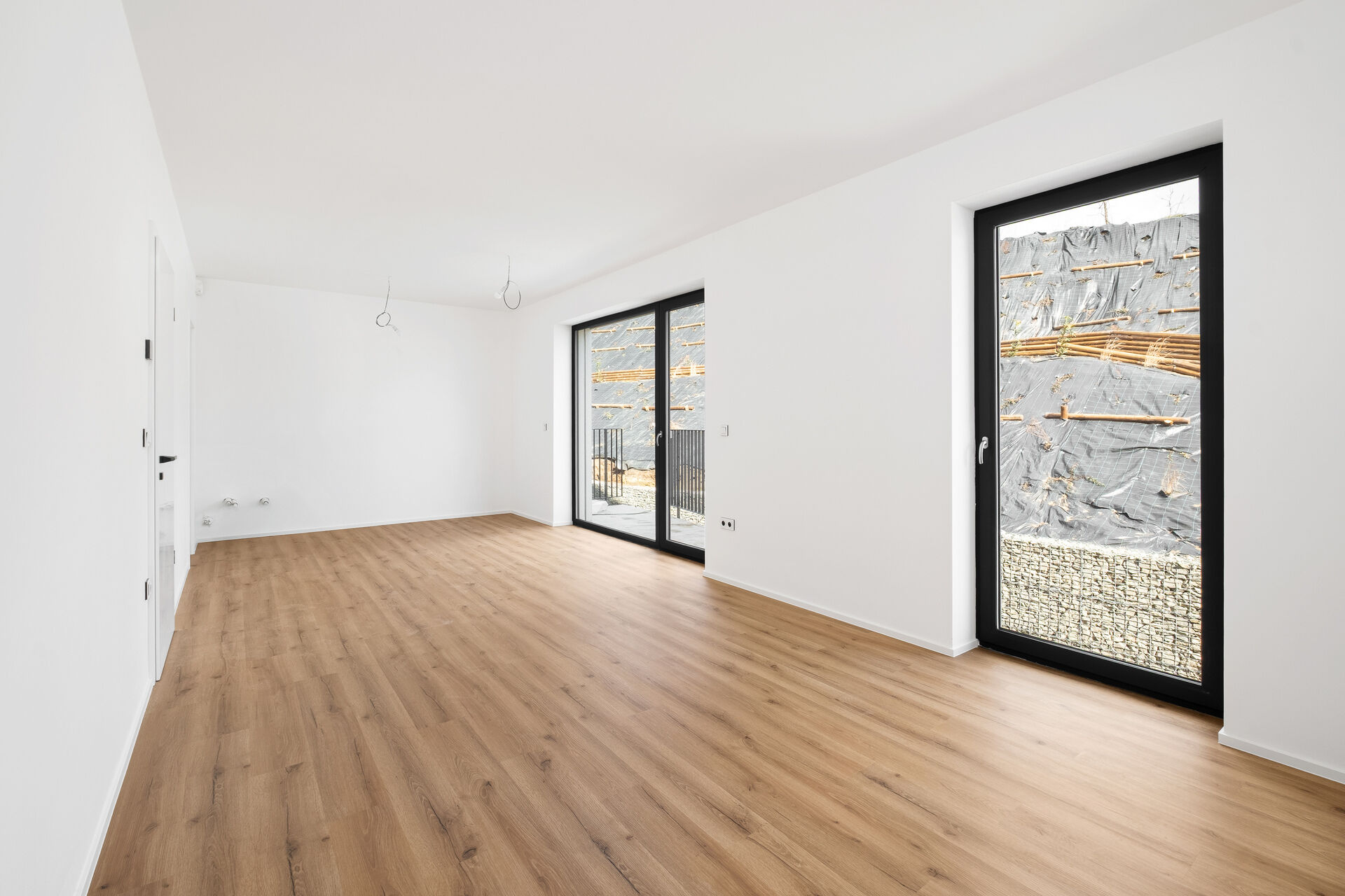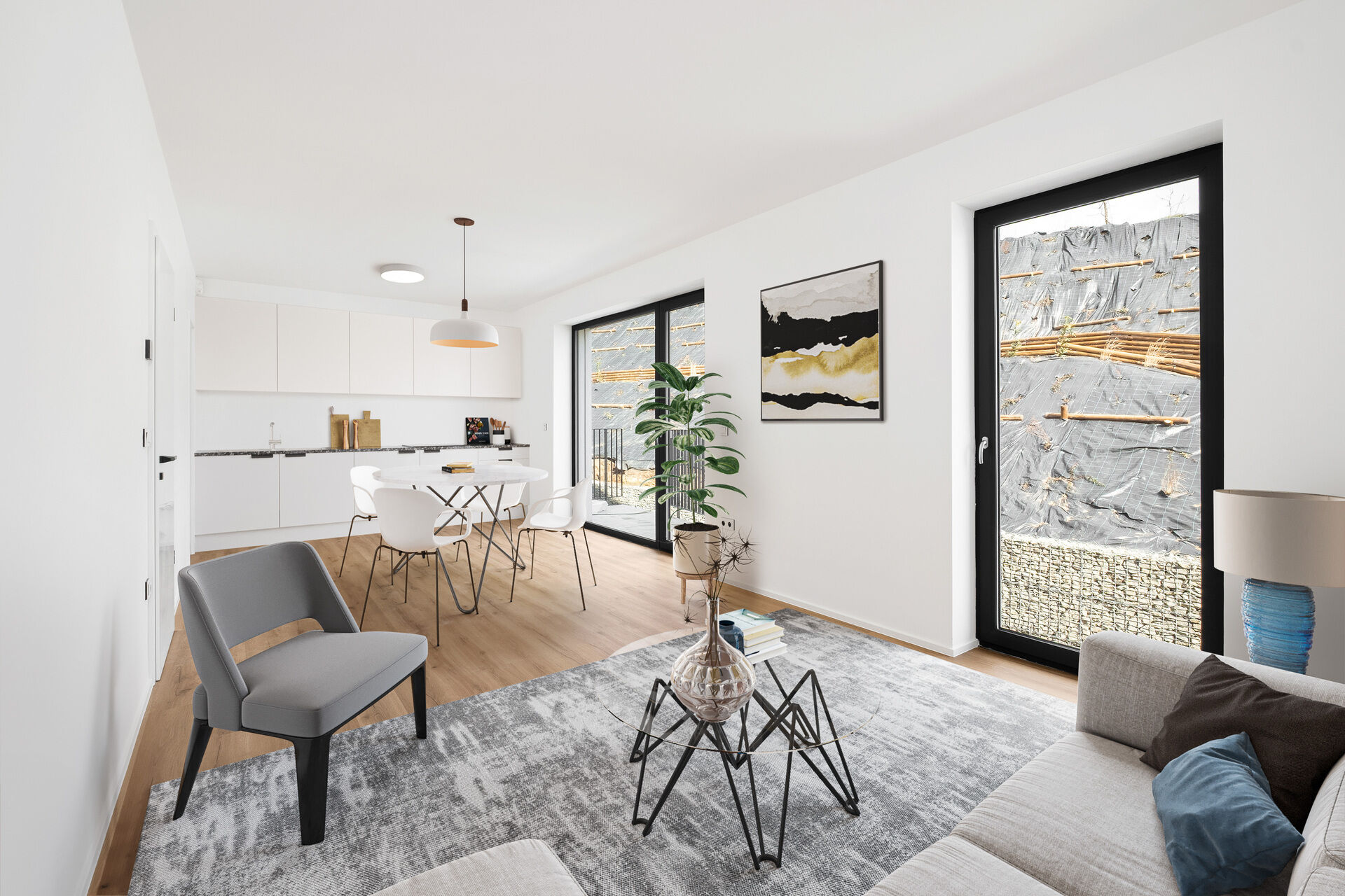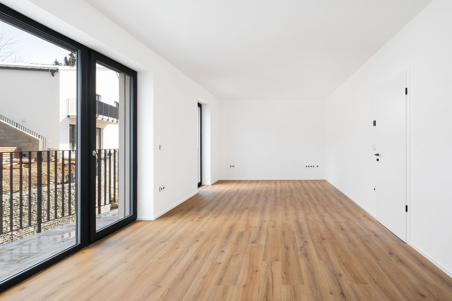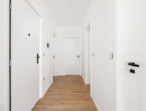 Obývací pokoj s kuchyňským koutem je srdcem bytu a plynule navazuje na terasou o velikosti 11 m². Ta vás zve k ranní kávě i večerním posezením s přáteli. Soukromá zahrádka je pak skvělým místem pro relaxaci, dětské hry nebo menší domácí zahrádku.