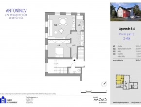 NNabízím k prodeji světlý apartmán 2+kk o ploše 56,6 m², umístěný ve 2. patře stylového domu po kompletní rekonstrukci v Antonínově – Josefově Dole.