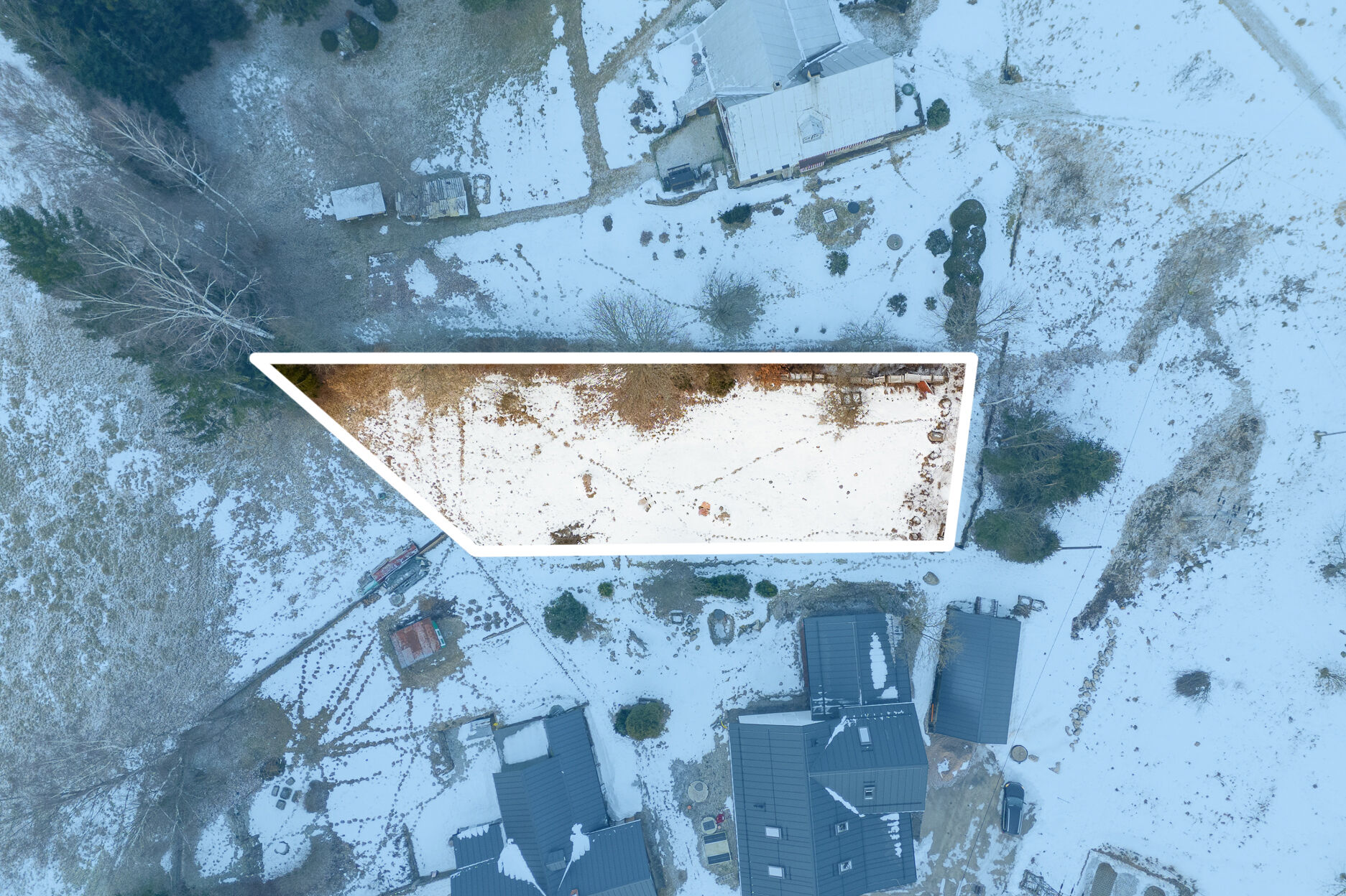 Tato parcela s vlastním přístupem nabízí ideální podmínky pro výstavbu rodinné roubenky nebo rekreačního domu. Velkou přidanou hodnotou je, že součástí ceny je kompletní projektová dokumentace tradiční podkrovní roubenky o podlahové ploše 220 m² včetně řešení inženýrských sítí, přičemž žádost o stavební povolení již byla podána. Budoucí majitel tak může výrazně urychlit celý proces realizace.