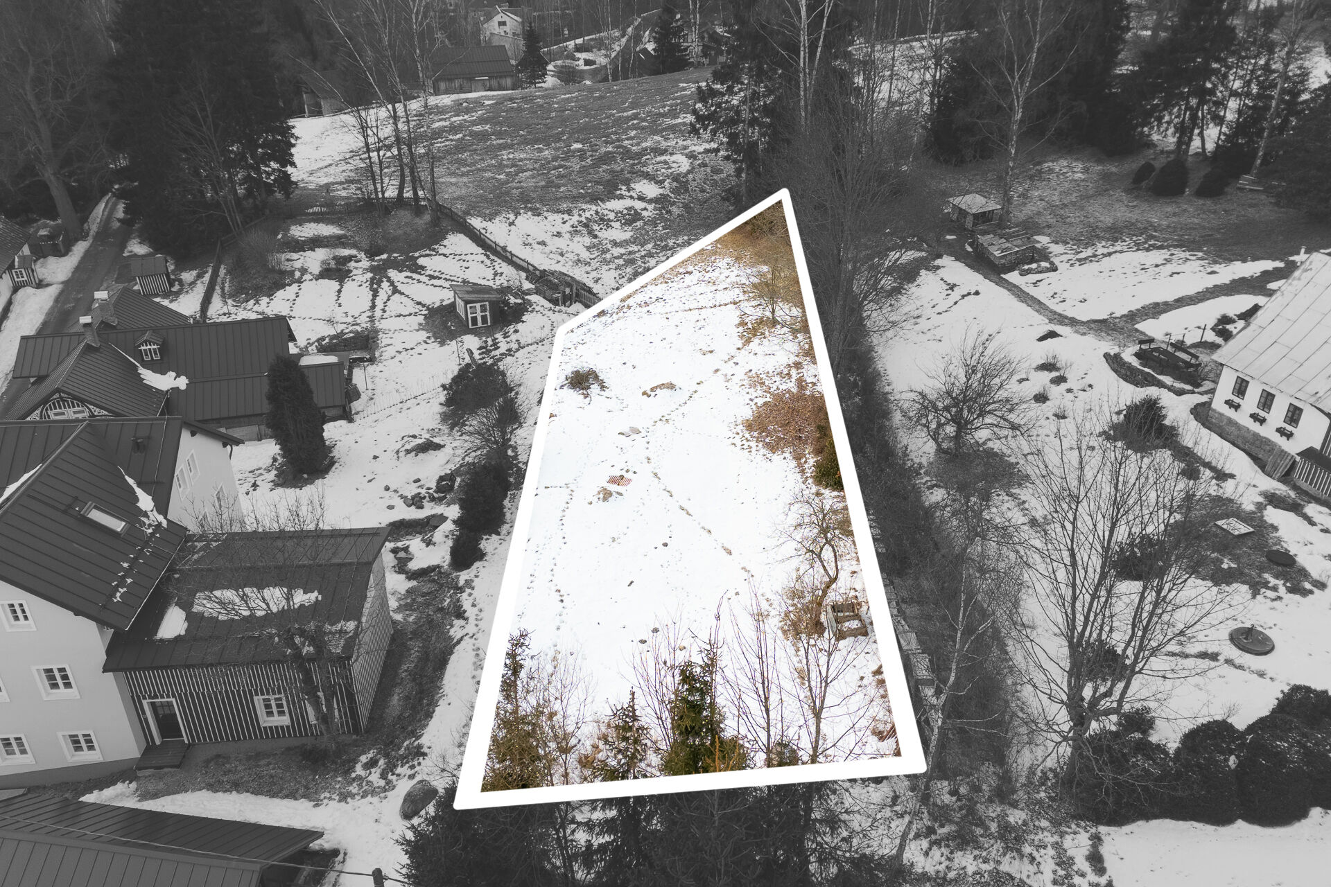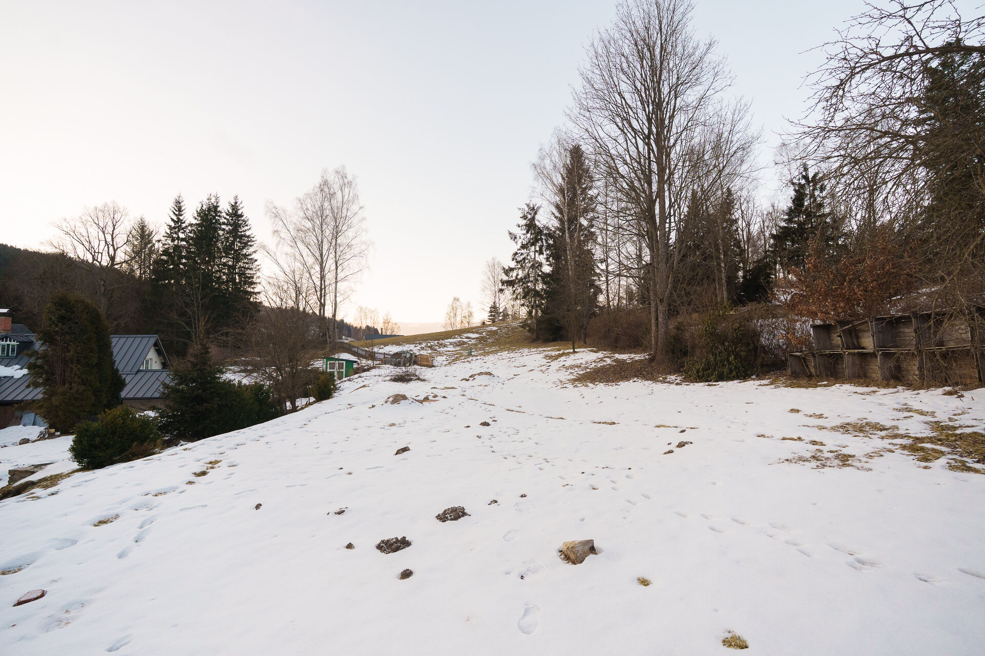 Rovinatý stavební pozemek o výměře 976 m² v klidné části Antonínova, spadající pod Josefův Důl v srdci Jizerských hor.
