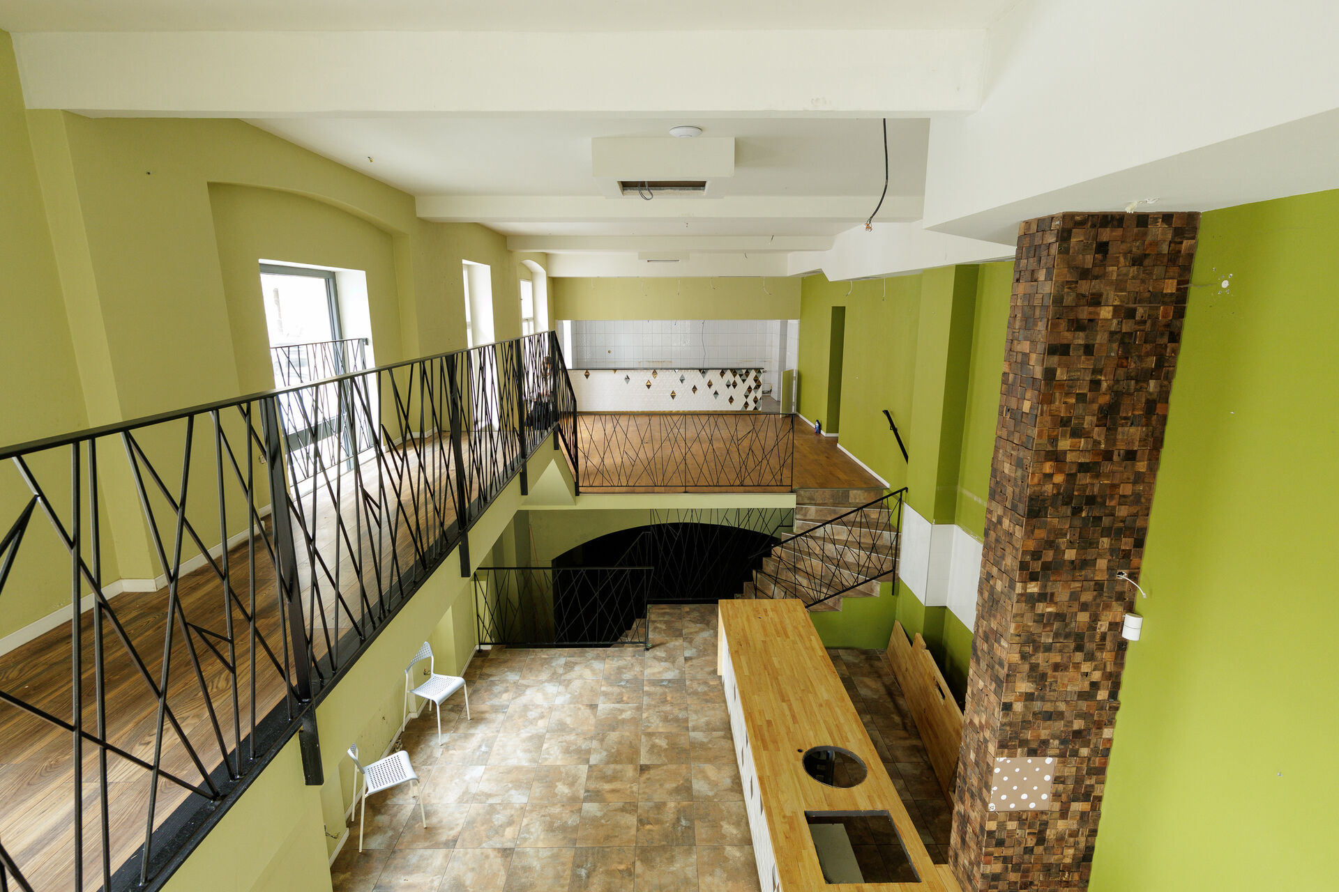 1. NP (přízemí): hlavní část provozu s výčepem/barem, otevřenou kuchyní, přípravnou a uzavřenou kuchyní a zázemím. Prostory nabízejí dva samostatné ale průchozí vstupy - do restaurace a do prodejny vedle.